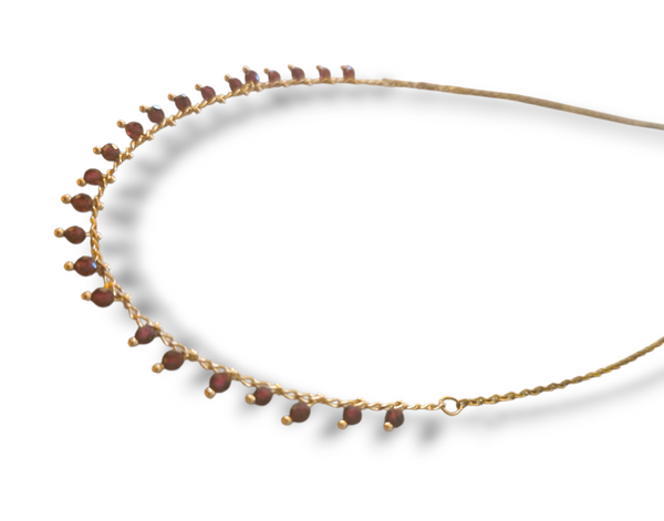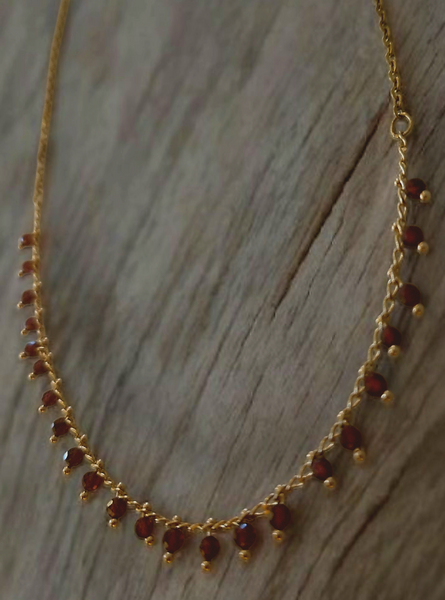 18K gullhúðuð keðja og vínrauðir steinar